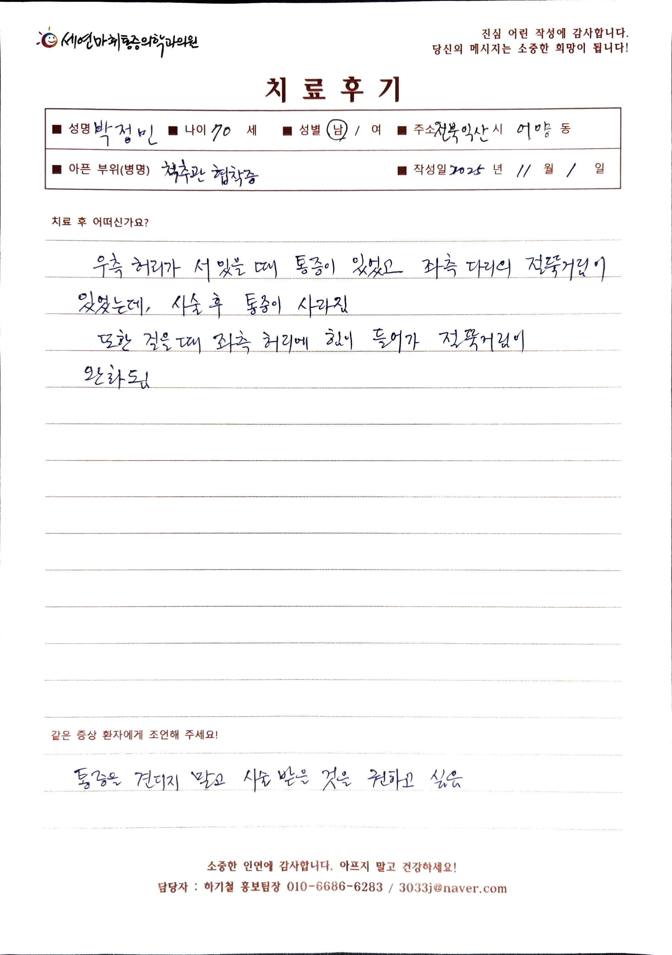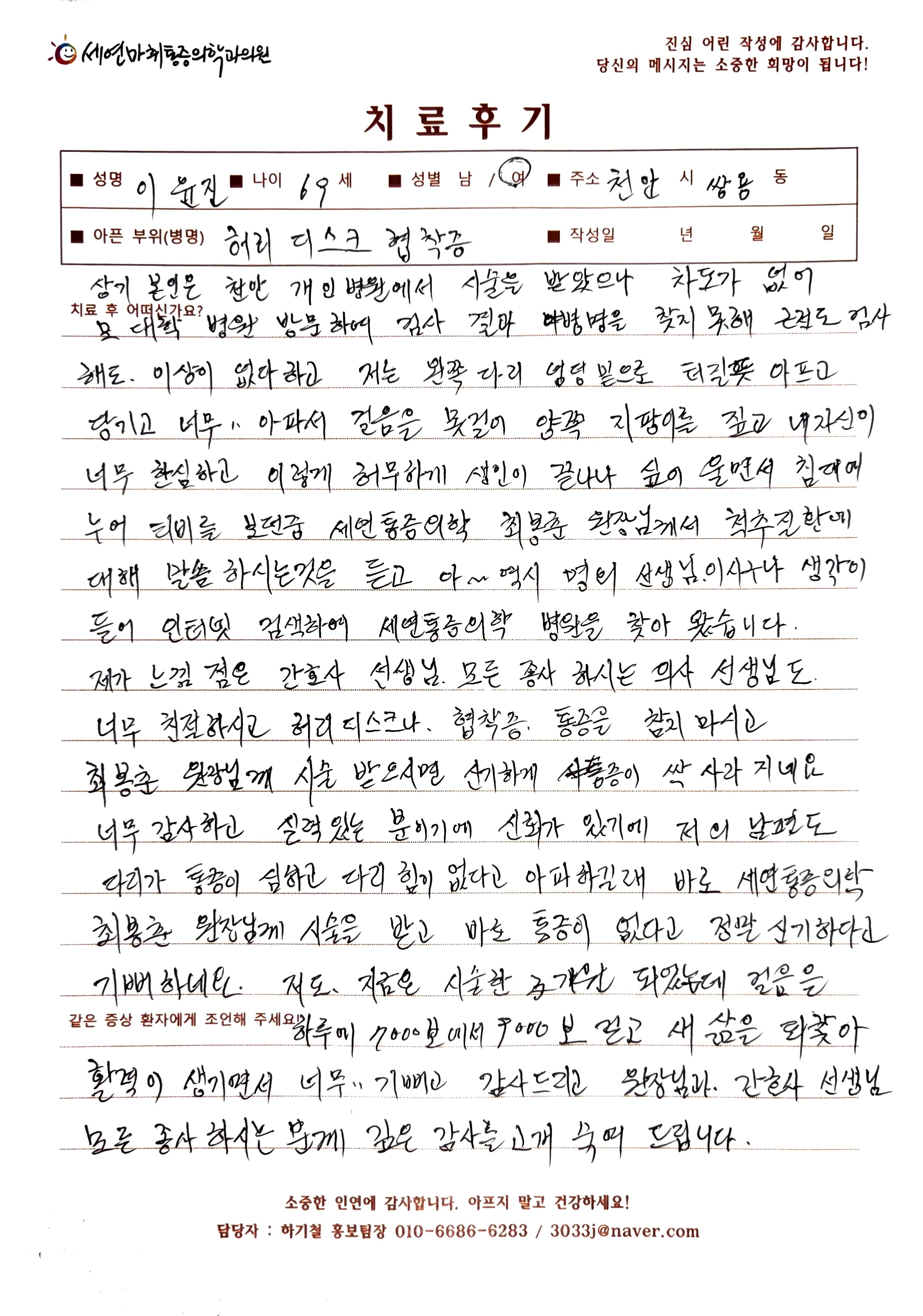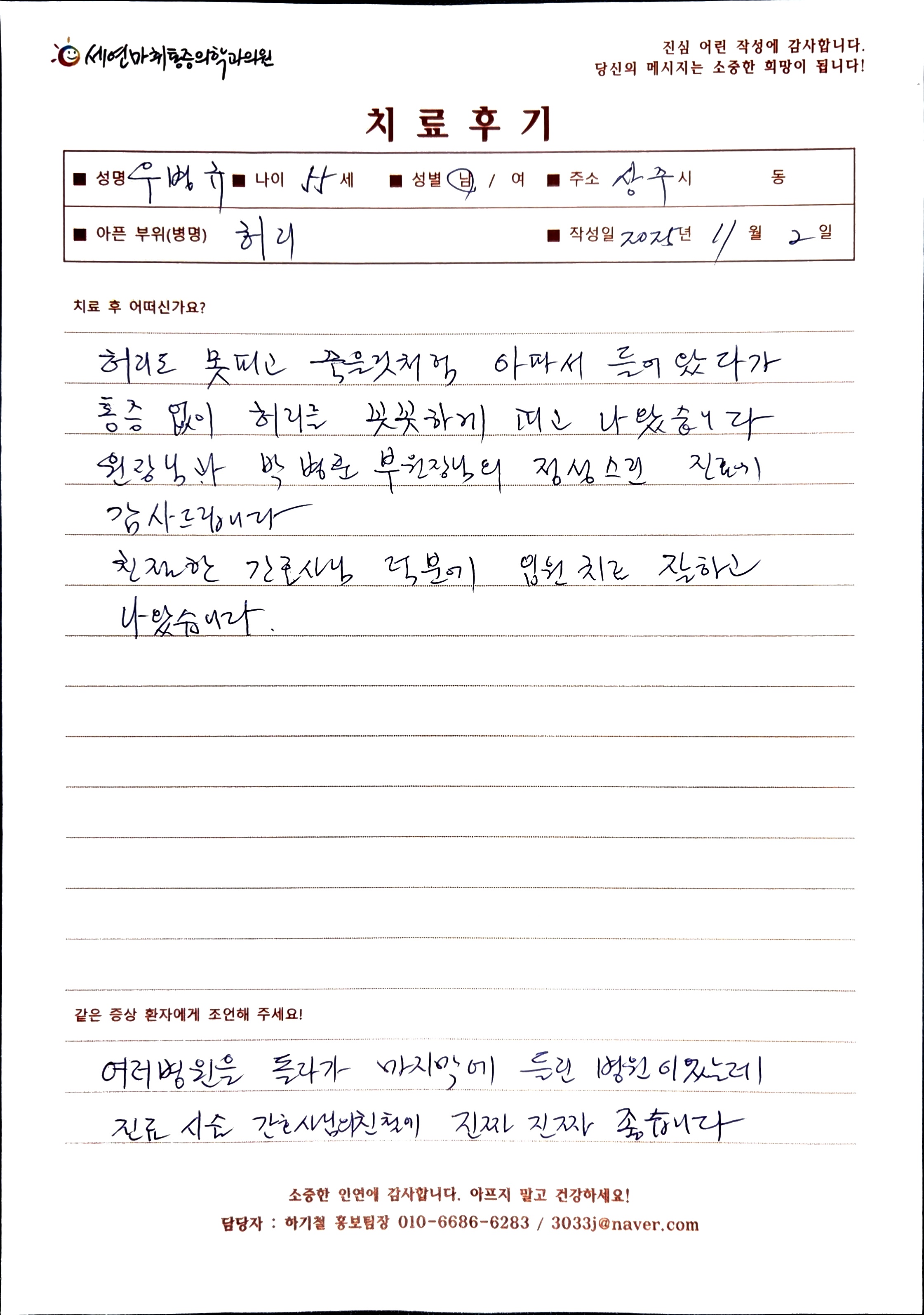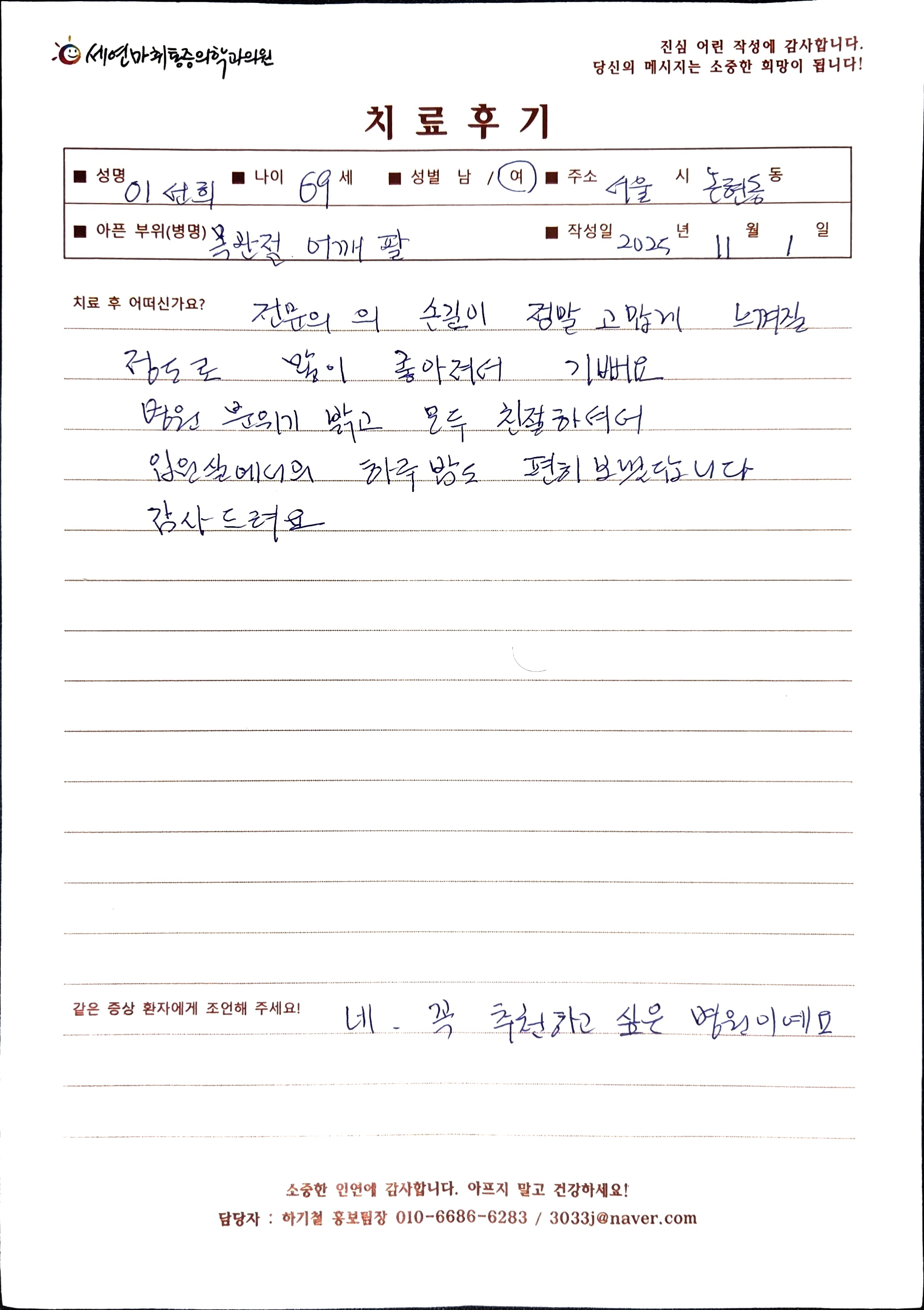 생생 치료후기 3 페이지 | 신사역 강남정형외과 | 세연마취통증의학과