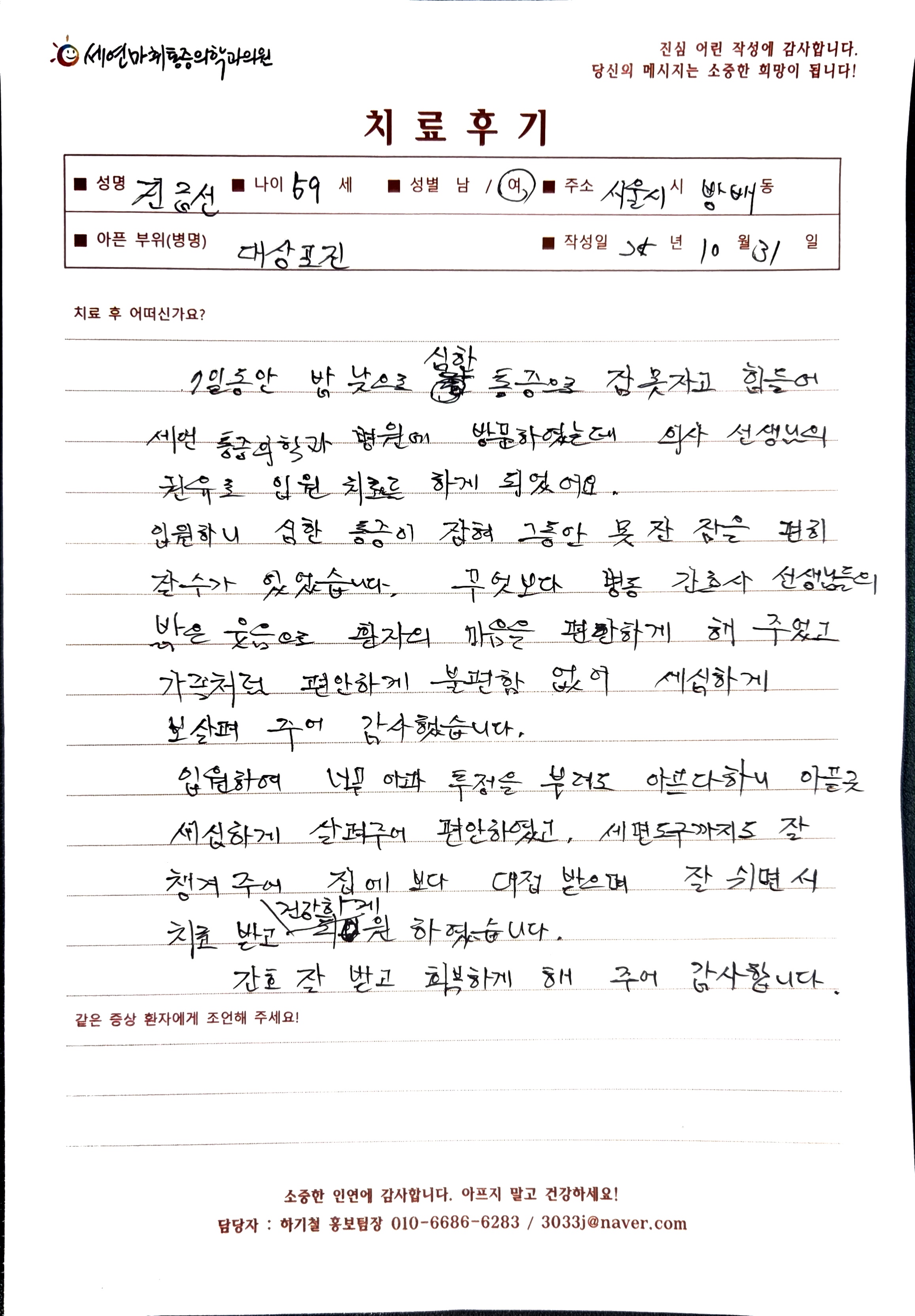 *대상포진 치료 후기입니다.*성명 : 진*선*나이 ...