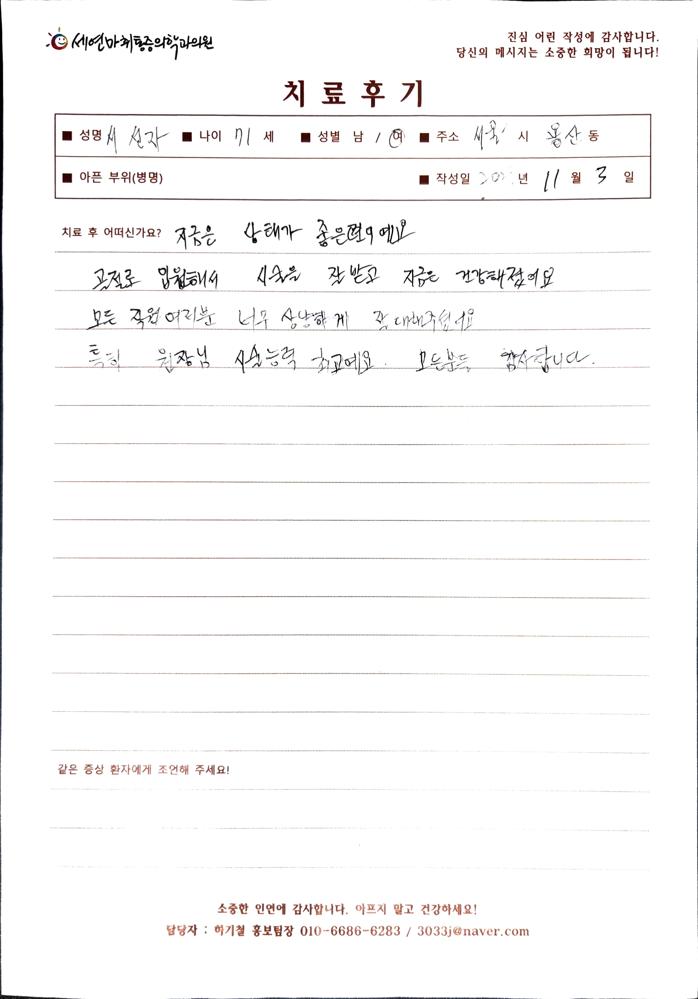 *이*희님의 PELD 치료 후기입니다.*성명 : 이*희*나이 ...